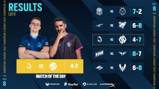 La octava jornada estuvo marcada por la derrota de G2 Esports ante Team Empire, que dejaba a los samuráis sin posibilidades de acceder al Major y cerrar una mala temporada en la que tan solo puede luchar por conseguir la mejor posición en la tabla.