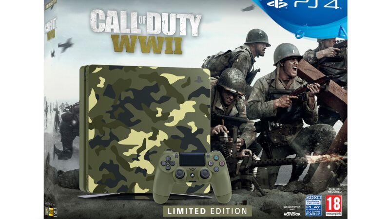 Dicho y hecho. La compañía japonesa ha presentado una PlayStation 4 Slim con motivos de Call of Duty: WW2. Como principal reclamo encontramos una versión de la consola “vestida” de camuflaje, acorde con los soldados que veremos en el juego. PlayStation 4 Pro y la versión de 1TB también estarán disponibles en este modelo.