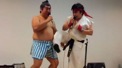 Su cosplay no es el mejor del mundo, salta a la vista, pero el que hayan cosechado más de 240.000 Favs y más de 120.000 RTs radica en su “pelea”. En efecto, estos dos youtubers han recreado una pelea de Street Fighter de manera muy original, utilizando única y exclusivamente sus bocas.