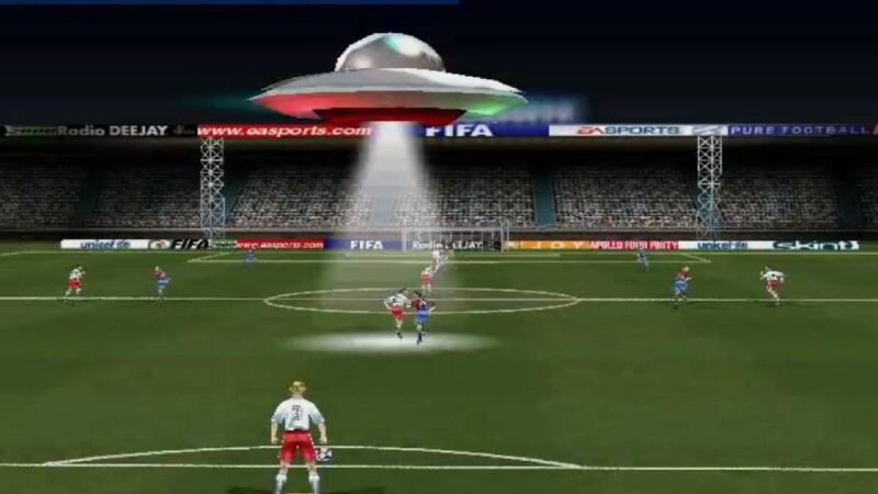 Damos un salto unos cuantos años, y plataformas, viajando hasta FIFA 2000. Una de las más laureadas entregas de la franquicia disponible para PlayStation y otras consolas de la época. El título de EA Sports, además de las plantillas actualizadas y otras novedades, introdujo un modo en el que los jugadores ¡podían ser abducidos por un OVNI en pleno partido! ¿Os imagináis una situación semejante en la vida real?