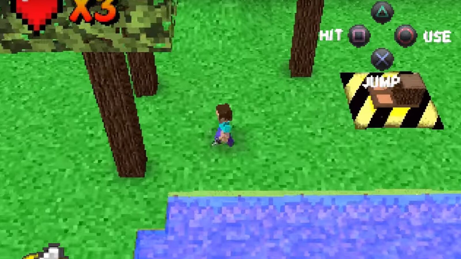 Echado un vistazo al envoltorio, ahora queda lo más importante, el propio juego. Minecraft para la primera PlayStation es una mezcla entre viaje al pasado y mantenernos en pleno 2017. Por supuesto, el apartado visual del título mantiene los elementos propios de la máquina de 32 bits: sonido, píxeles, interfaz vetusta y movimientos del personaje algo robóticos.