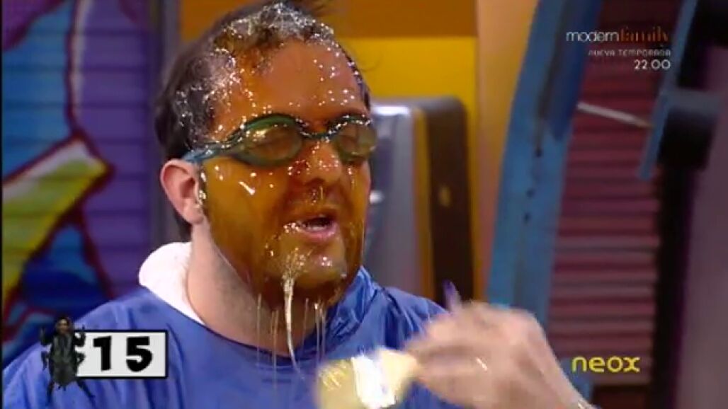 Pegar cereales en la cara llena de miel en 15 segundos