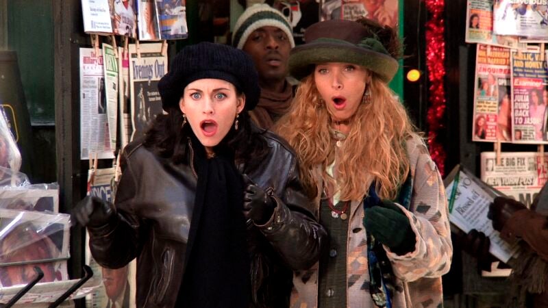En un capítulo de 'Friends', Mónica y Phoebe se enamoran de un hombre que está comprando en un kiosko. Para llamar su atención, Mónica decide lanzarse y silbarle. Desgraciadamente, el hombre se gira en el momento menos oportuno y le acaban atropellando.