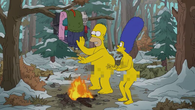 Homer y Marge acaban desnudos en medio del bosque luchando por su supervivencia