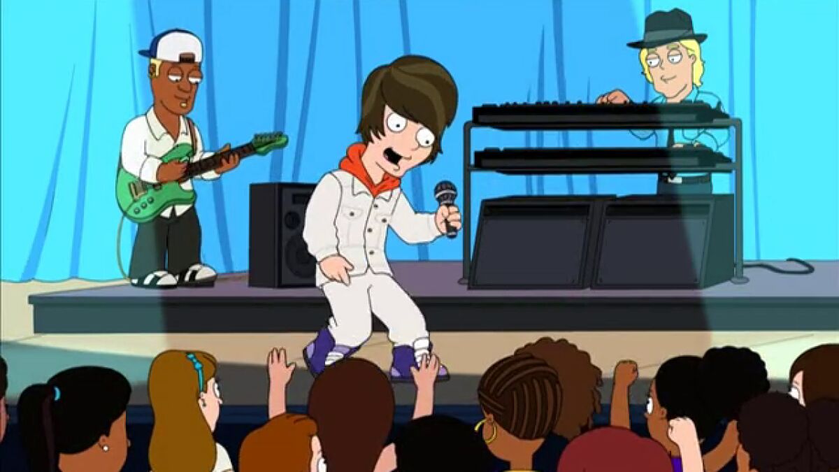 La pegadiza canción de Justin Bieber 'Baby' acaba convirtiendo a Cleveland en su fan absoluto. Al final del capítulo podemos ver a Cleveland y a Cleveland Jr. asistir a un concierto de Justin Bieber. Esta serie conocida por el humor ácido de su creador, Seth Macfarlane también creador de series como Padre de Familia o American Dad, nos muestra a un Justin Bieber, cyborg controlado a través de un joystick por el también conocido cantante americano Usher